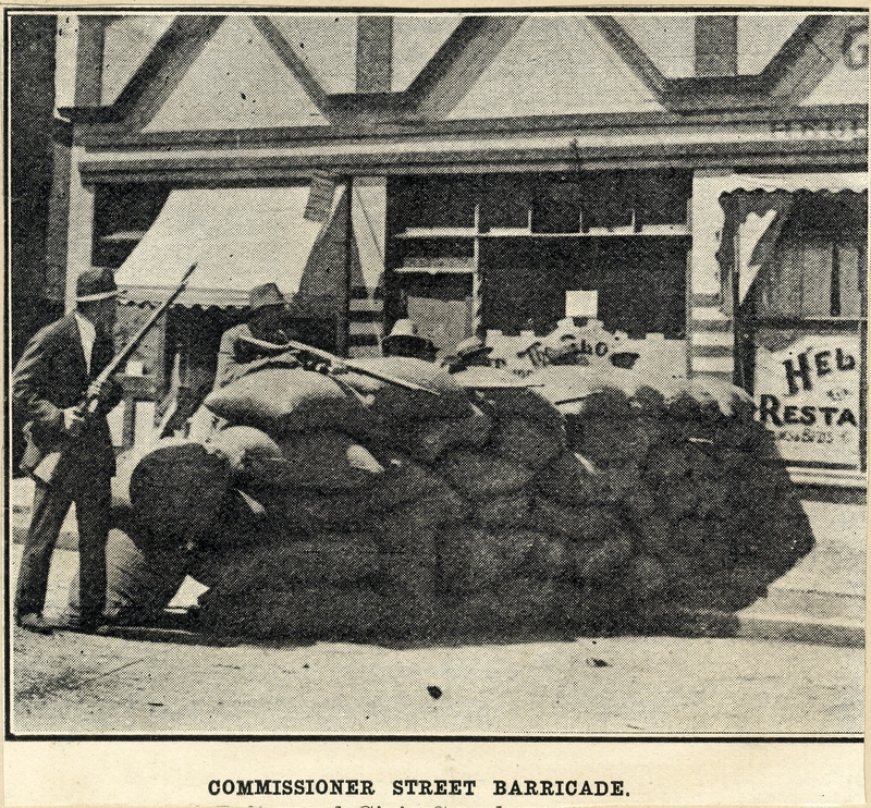 “Commissioner Street barricade”, Cory Library and Historical Archives, accessed 29 December 2025, https://digitalarchives.ru.ac.za/s/cory/item/6914