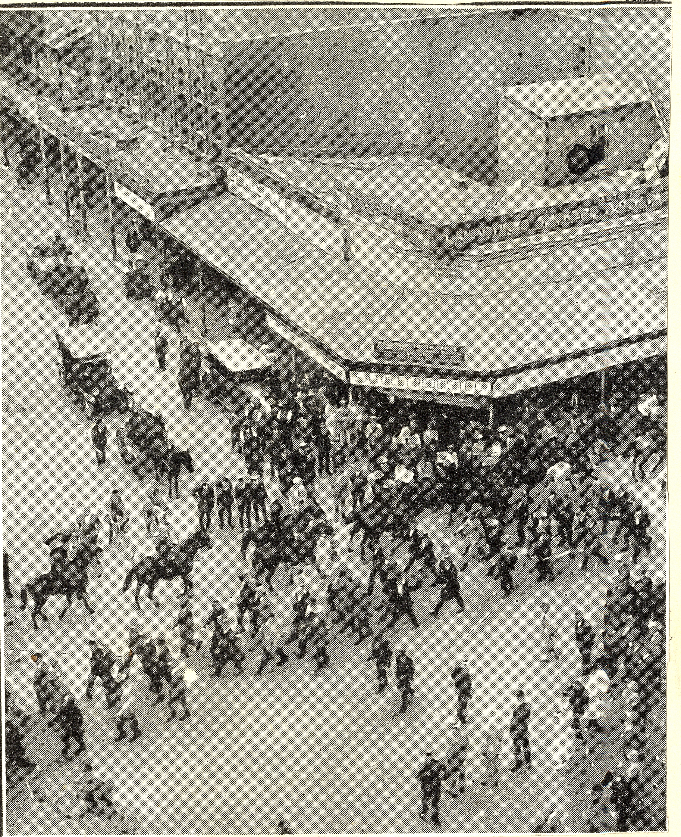“Rival detachments meeting on Tuesday morning March 7, in the middle of Joubert Street - Johannesburg's narrowest throughfare”, Cory Library and Historical Archives, accessed 29 December 2025, https://digitalarchives.ru.ac.za/s/cory/item/6922
