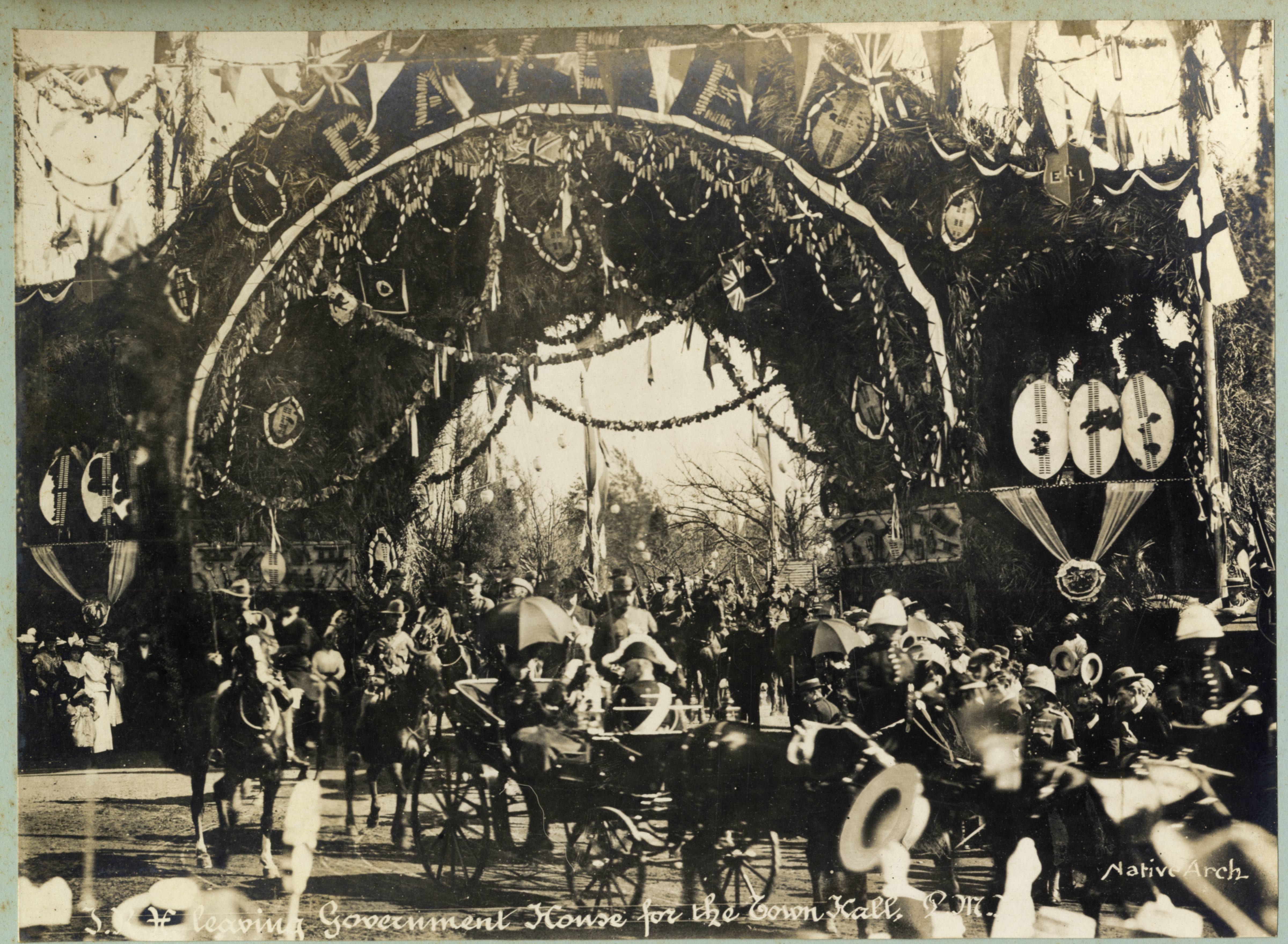 - Their Royal Highnesses leaving Government House for the Town Hall Pietermaritzburg. Native Arch