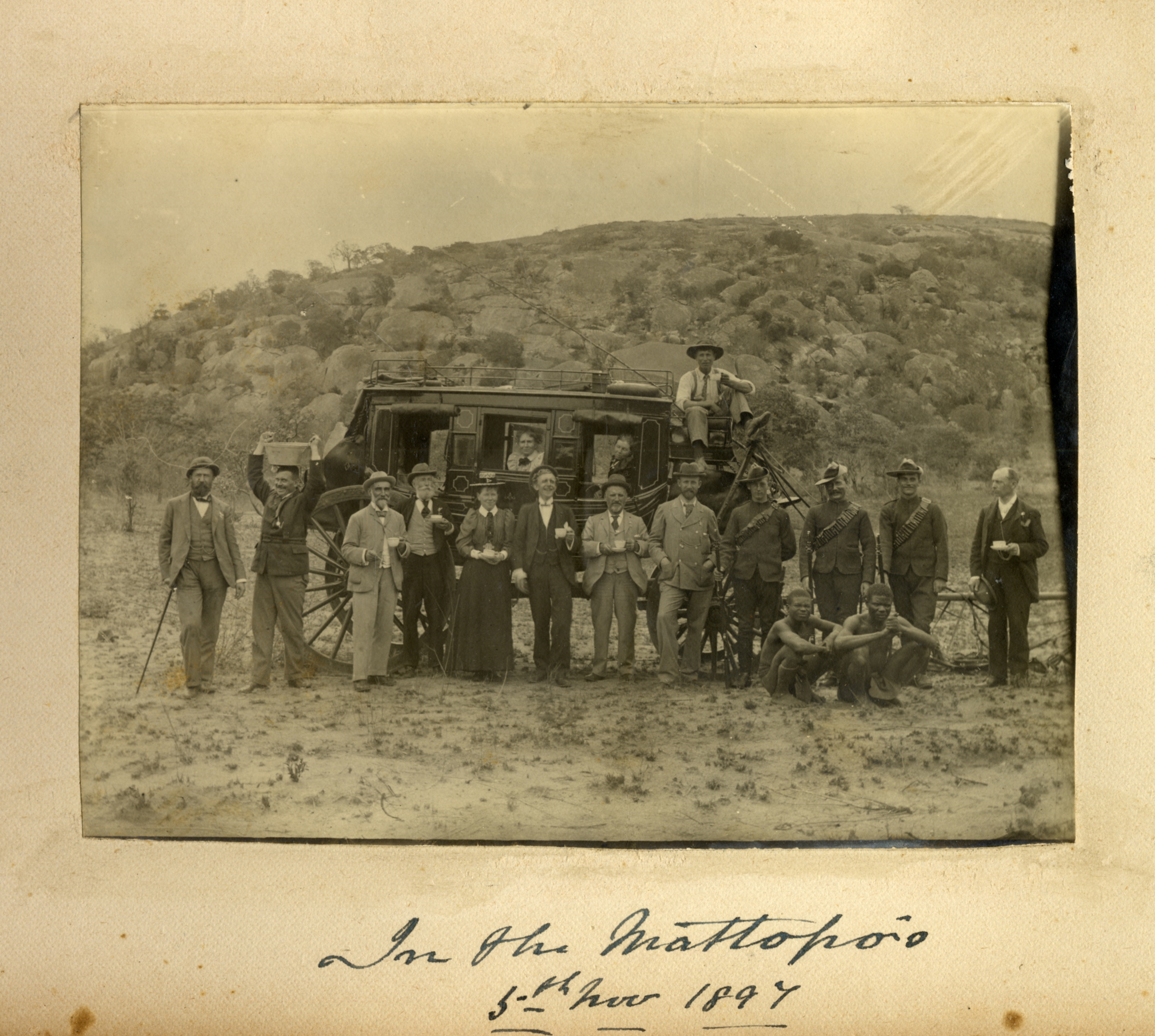 “Scene at the terminus: awaiting the governor's train- The inscription partly seen on the right was "our two roads of progress: Railroads and Cecil Rhodes!"”, Cory Library and Historical Archives, accessed 29 December 2025, https://digitalarchives.ru.ac.za/s/cory/item/7192