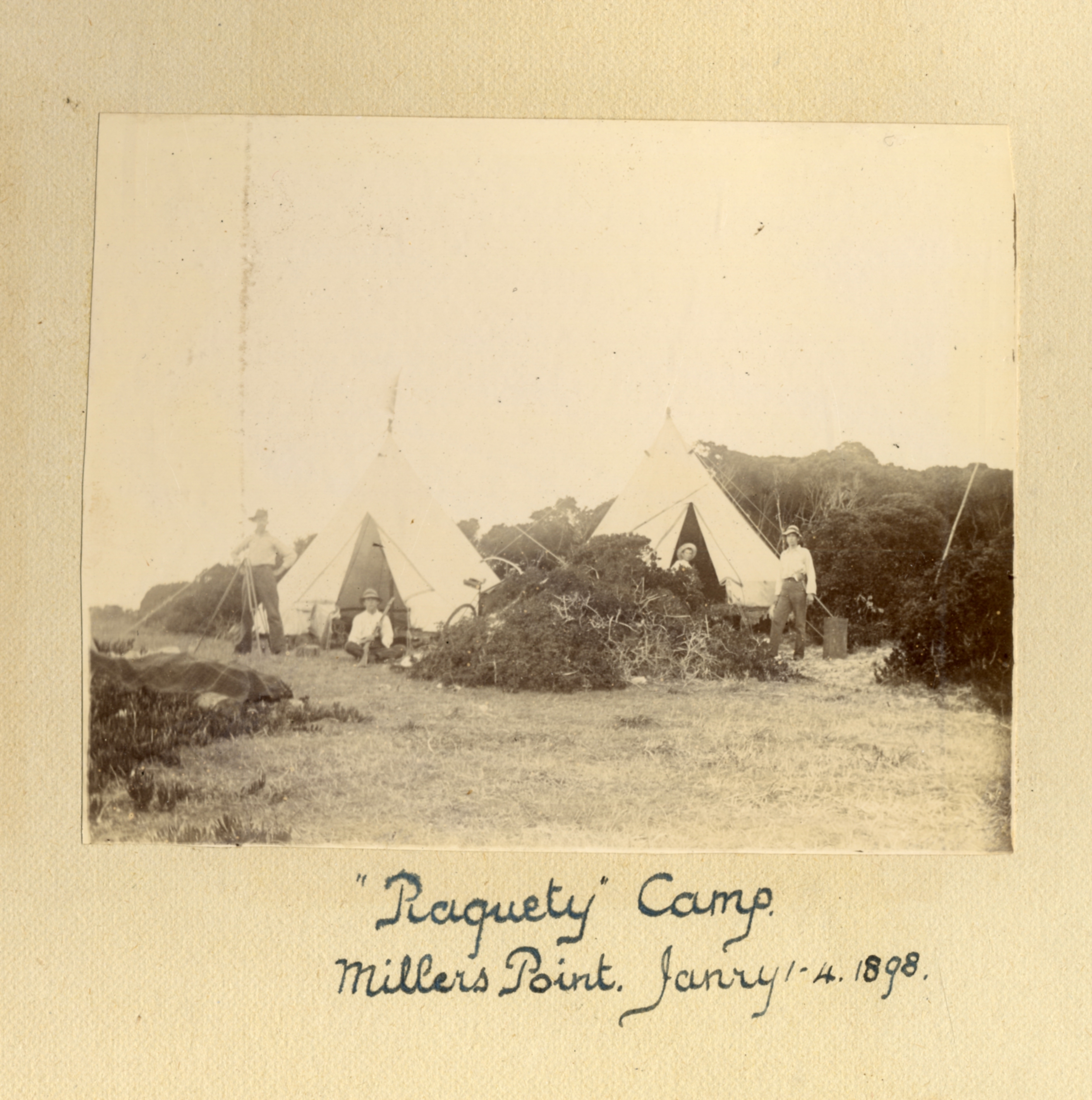 1898-04-01, “'Raquety' Camp Millers Point”, Cory Library and Historical Archives, accessed 28 December 2025, https://digitalarchives.ru.ac.za/s/cory/item/7218