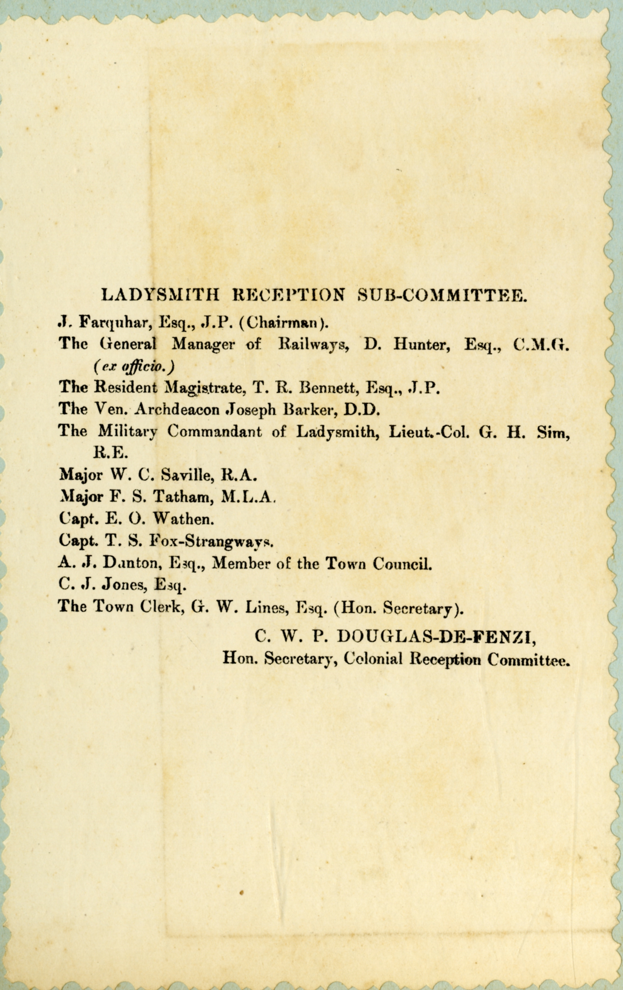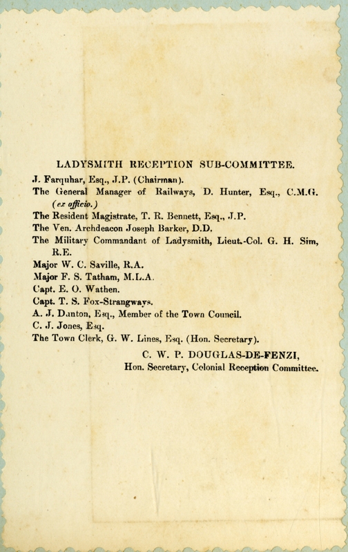 “Ladysmith reception sub-committee”, Cory Library and Historical Archives, accessed 29 December 2025, https://digitalarchives.ru.ac.za/s/cory/item/7228