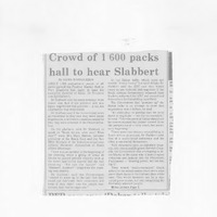 - Newspaper clipping reporting on the address by Dr Frederik van Zyl Slabbert (IDASA Executive Director), at the Feather Market Hall in Port Elizabeth. Dr. Slabbert addressed a crowd of 1600 interested parties, with the message of the address focussing on the outcomes of the political discussions held in Dakar, Senegal, between the 9th and 12th of July 1987, between members of IDASA and the ANC.