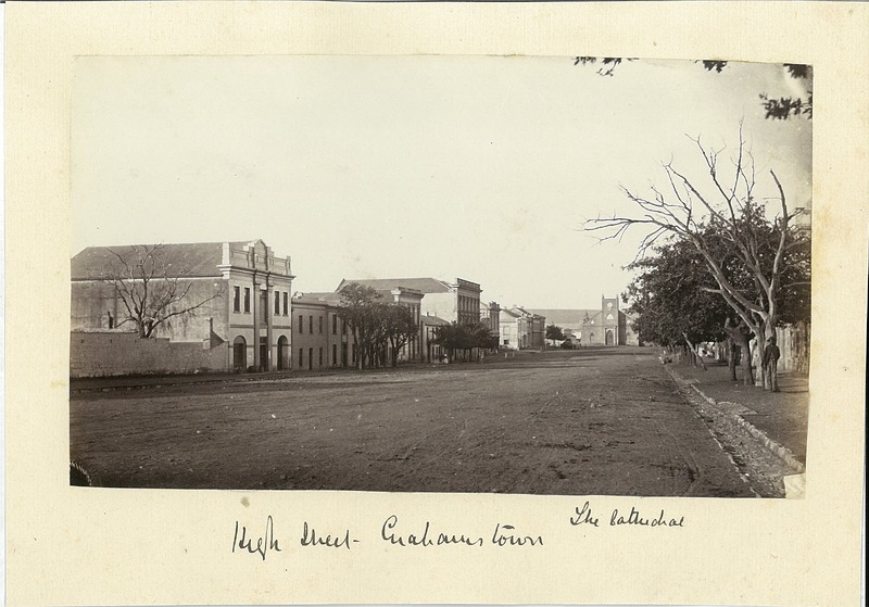 Photographer unknown, “High Street, Grahamstown, with view of the Cathedral of St Michael and St George, circa 1870”, Cory Library and Historical Archives, accessed 29 December 2025, https://digitalarchives.ru.ac.za/s/cory/item/7302