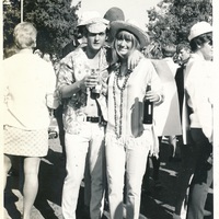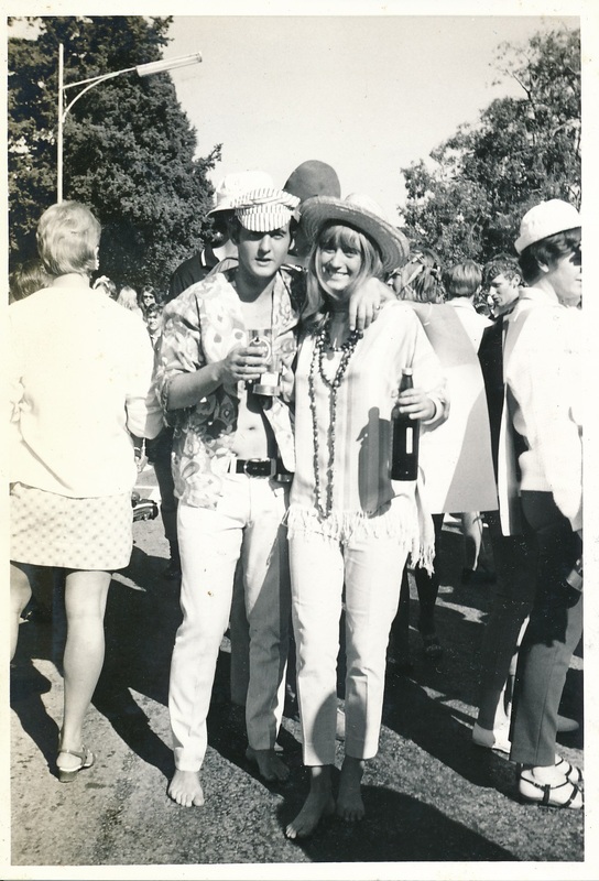 Judy Claypole and Digby Brown in costume for Rag week, 1969