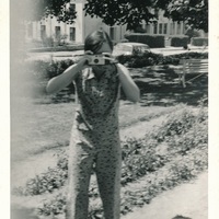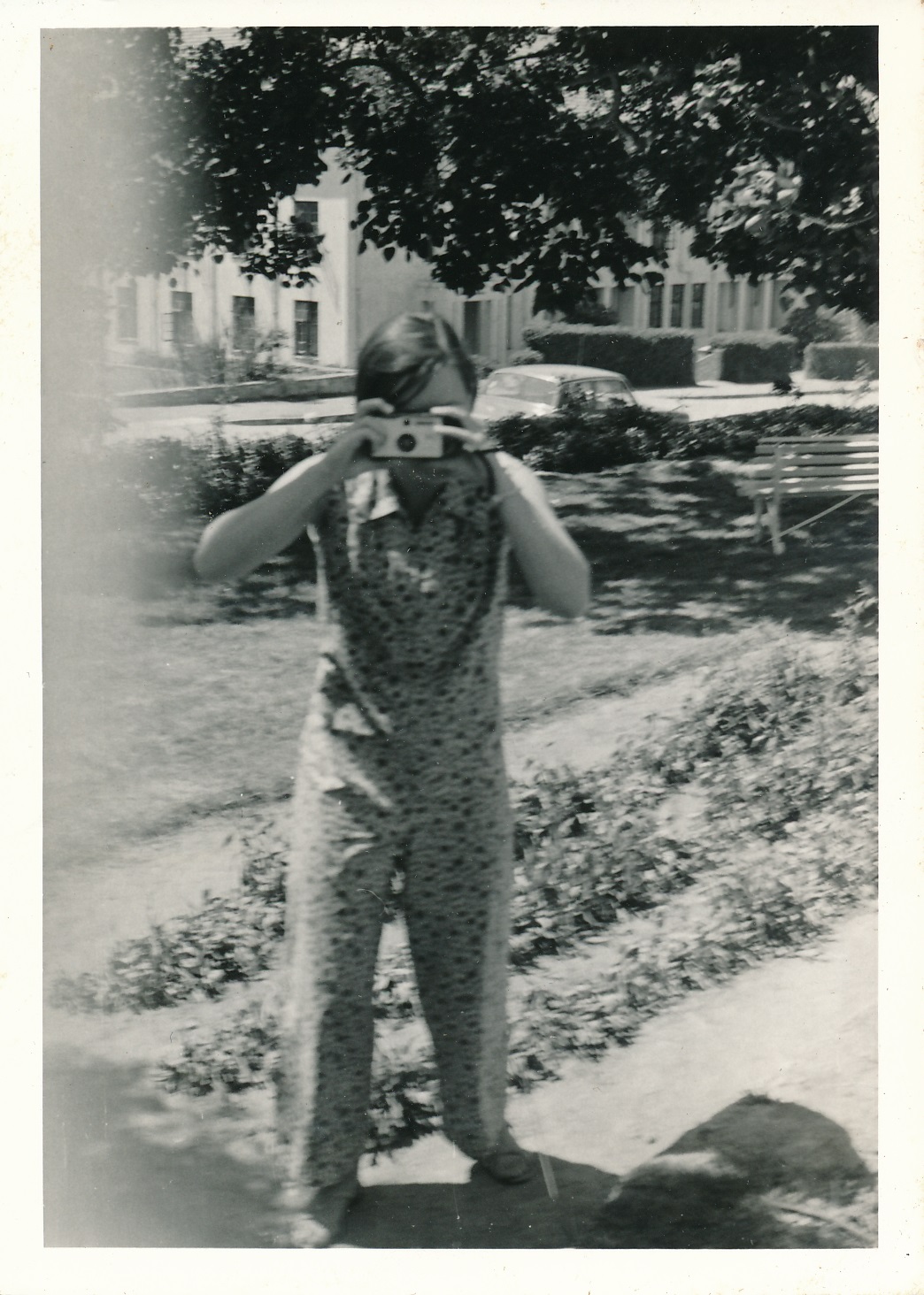 Yvonne Robb taking a photo of an unknown photographer, possibly outside of Oriel House