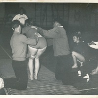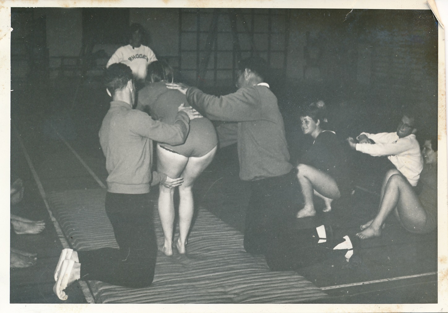 Ant Davey, Glynn Jermyn and Koos De Wet during a gymnastics display in 1968