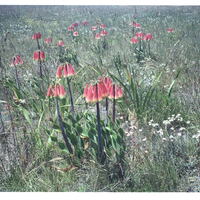 - Close-up of about 20 Cyrtanthus obliquus plants in a field of coarse grassveld. Another group of 25 plants grew to the immediate left of the picture, with other lesser groups & individuals scattered around the field. With housing estates crowding in on two sides of this field its plants mmust inevitably disappear.
