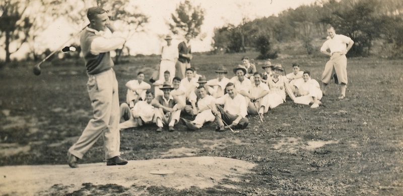 L.A. Bushell 1929, playing golf, watched by other golfers