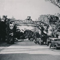 The road into Grahamstown decorated possibly for the Royal Visit 1947