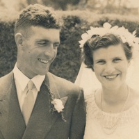 - Wedding photograph of Herbie Selfe and Joan Rosen.
