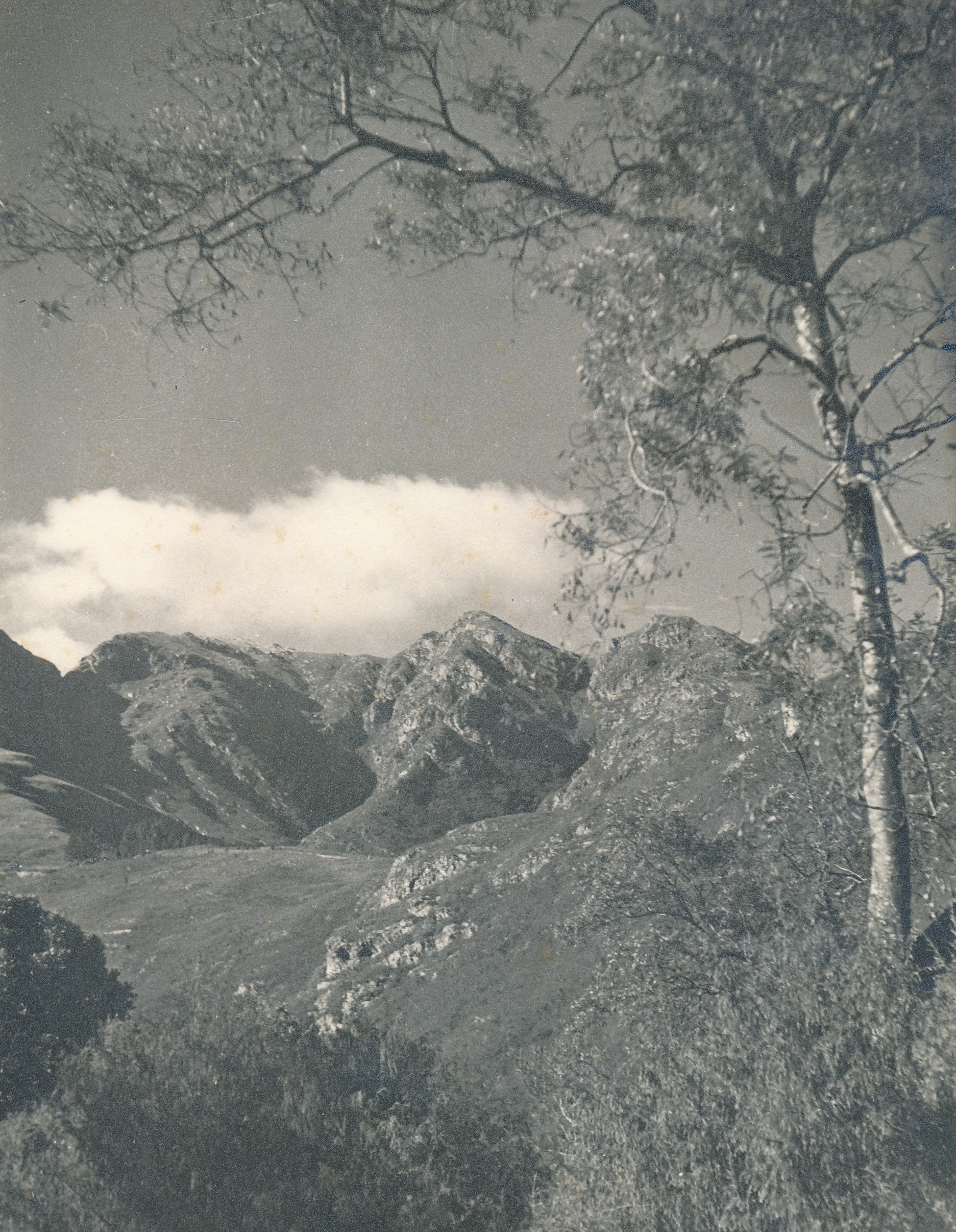 - Photograph of mountains (possibly taken by Judge TM Mullins) with a tree in the foreground.