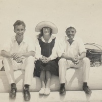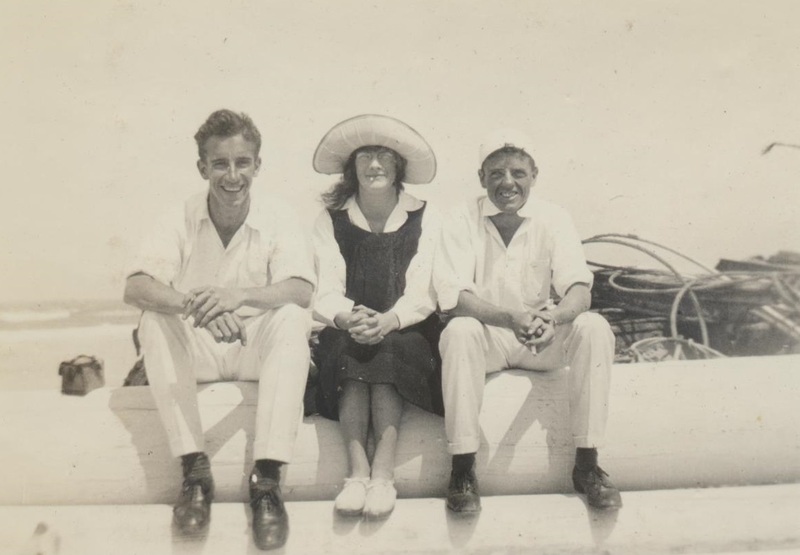 - Photograph of three people (incuding Vivian Fitzsimons) at West Beach.