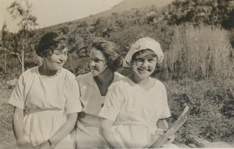 - Photograph of Gwen (Fitzsimons wife), Aileen and Lily at Featherstone Kloof, 1922.
