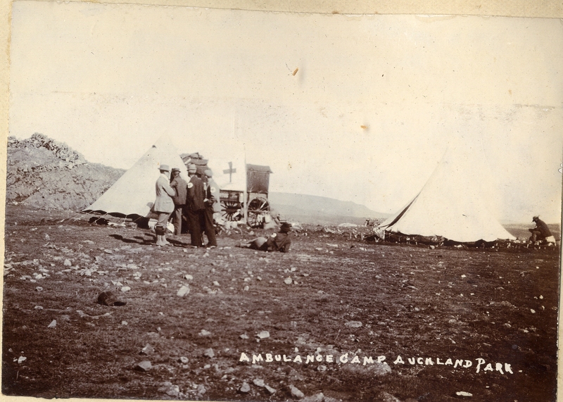- Photograph entitled "Ambulance Camp, Auckland Park" showing a group of men in front of a tent and an ambulance