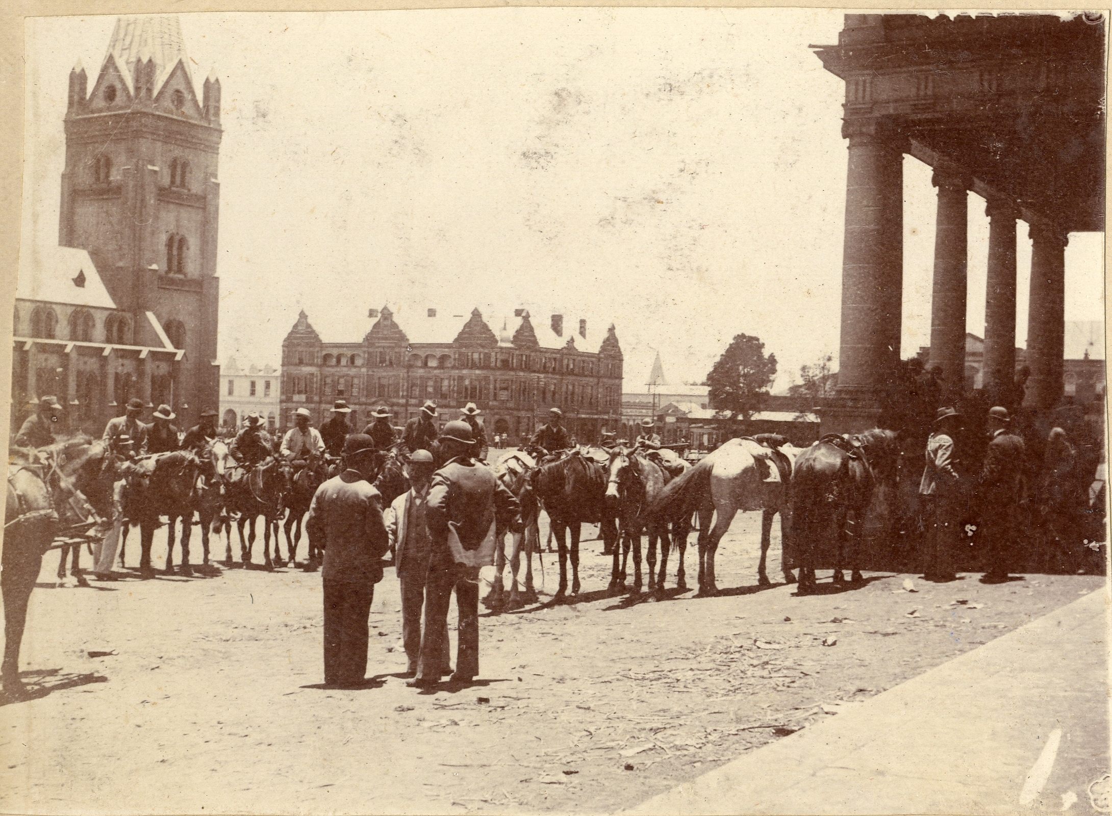 - Photograph of a group of men on horseback in Church Square, Pretoria