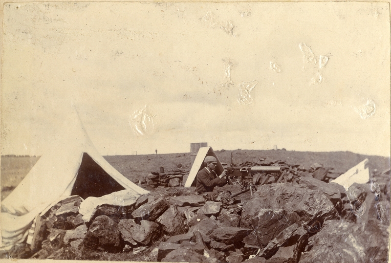 - Photograph entitled "Maxim gun: Rebel" showing a man (presumably one of the rebels) preparing to fire a Maxim gun, a recoil-operated machine gun