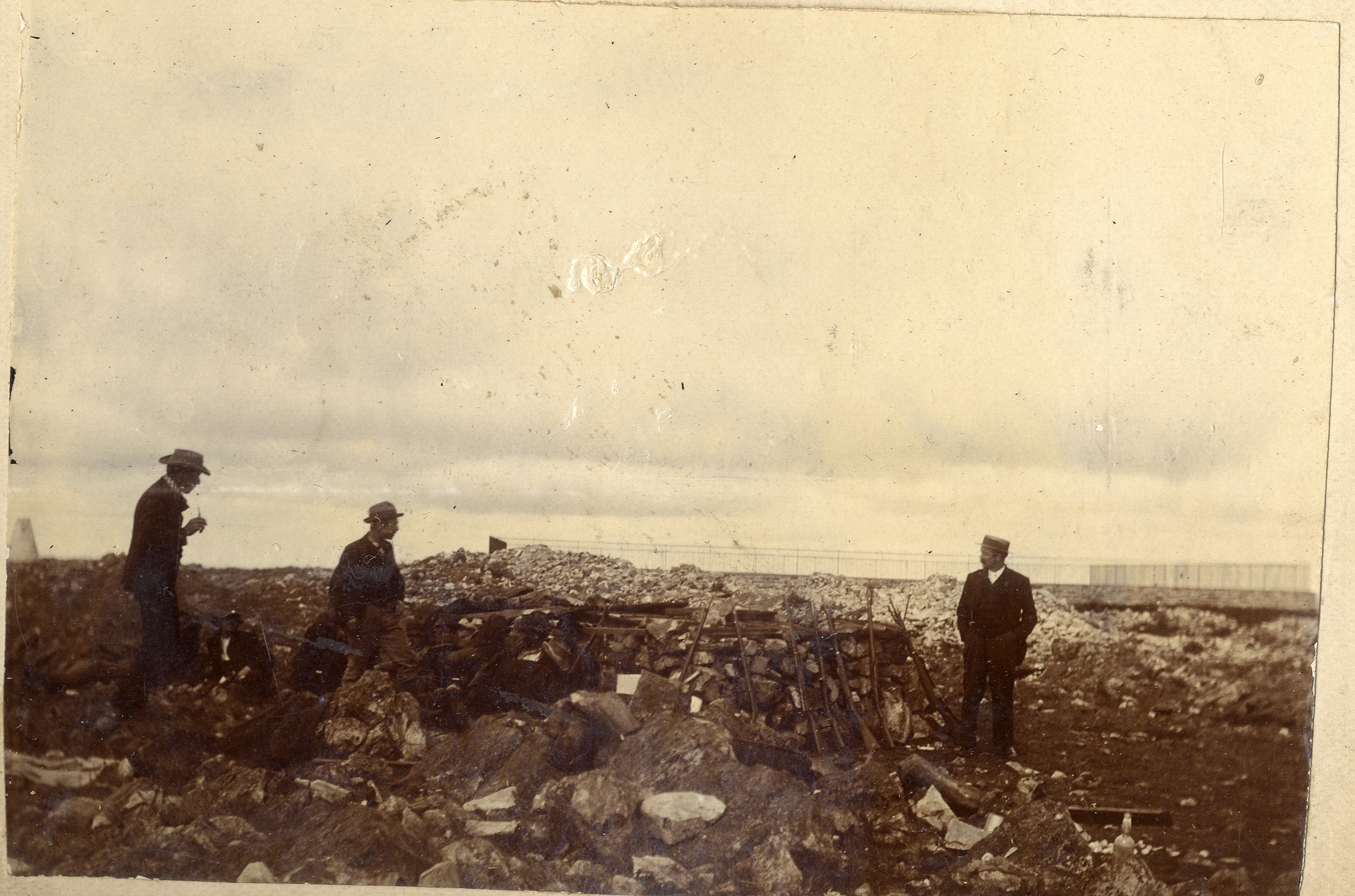 - Photograph entitled "Rebel outpost" showing a number of men behind a makeshift wall with several rifles leaning against it.