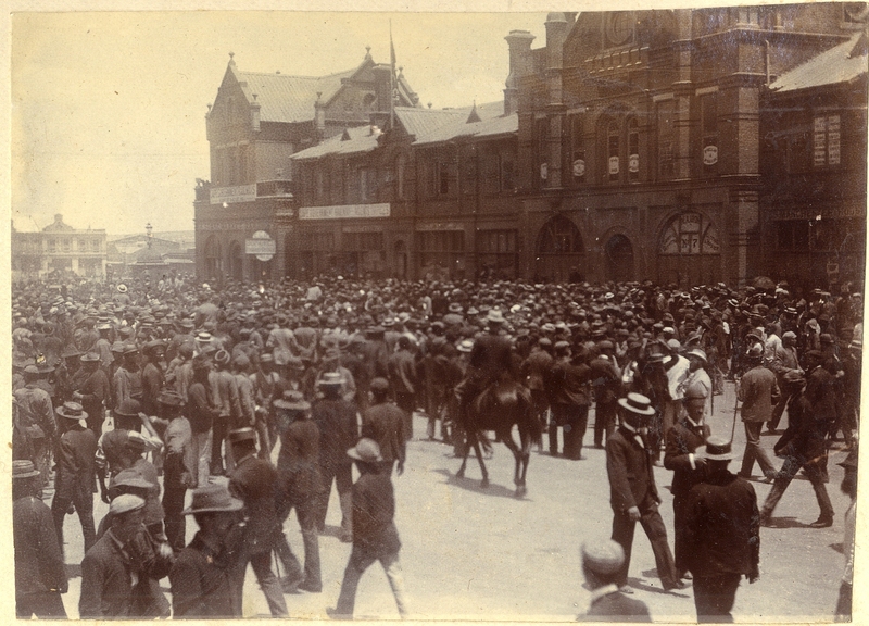 - Photograph entitled "Johannesburg Market House - Reform Troops passing" showing a large group of people (presumably the Reform Troops) in Johannesburg.
