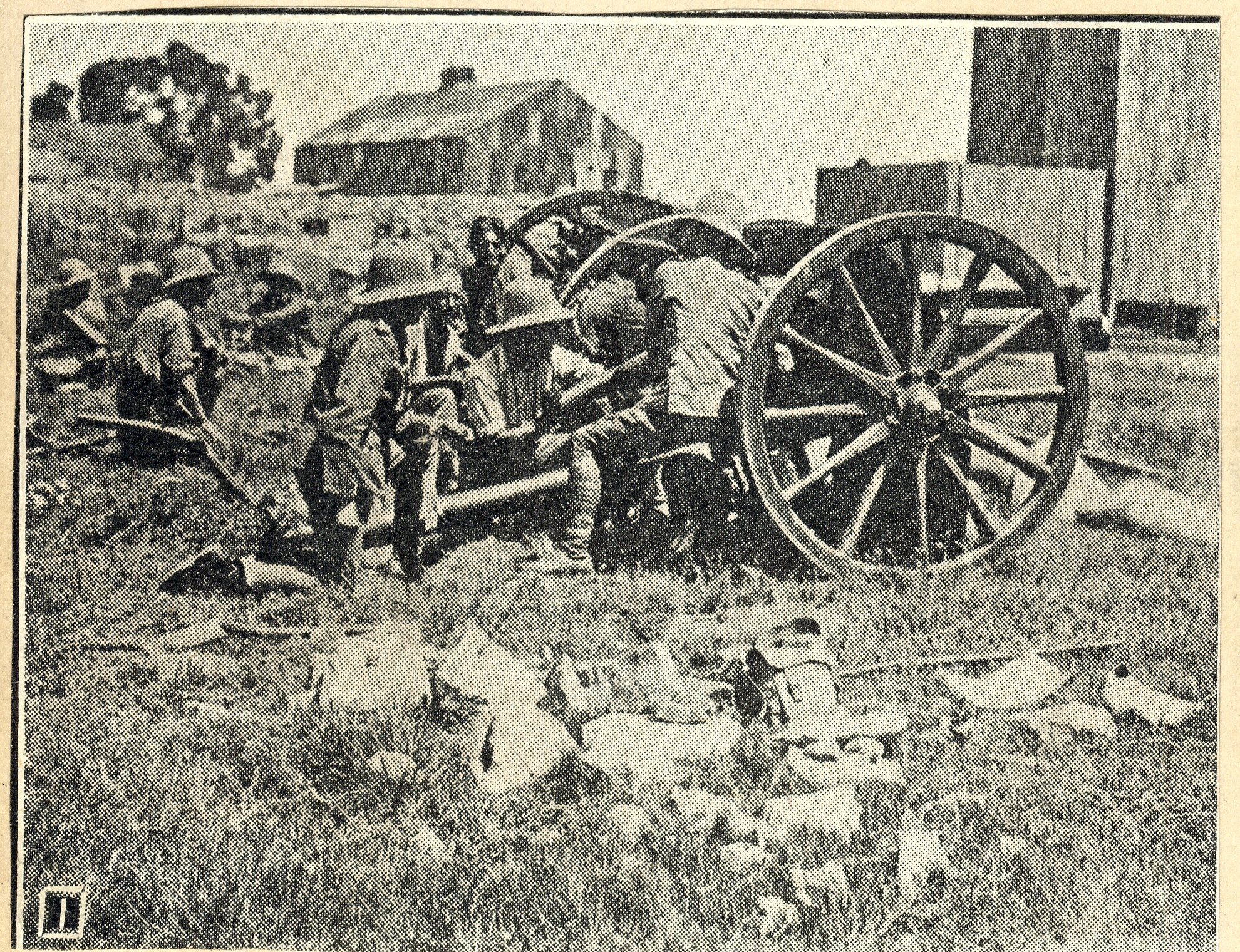 - Newspaper clipping showing one of the guns that bombarded Fordsburg, Johannesburg in South Africa during the Rand Rebellion, from 11 o'clock till 10 minutes past noon on Tuesday (possibly 14 March 1922).