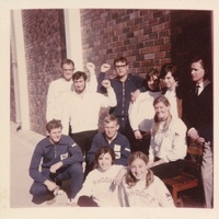 Rhodes University Gymnastics Club 1968, possibly Gail Martin seated on the far right