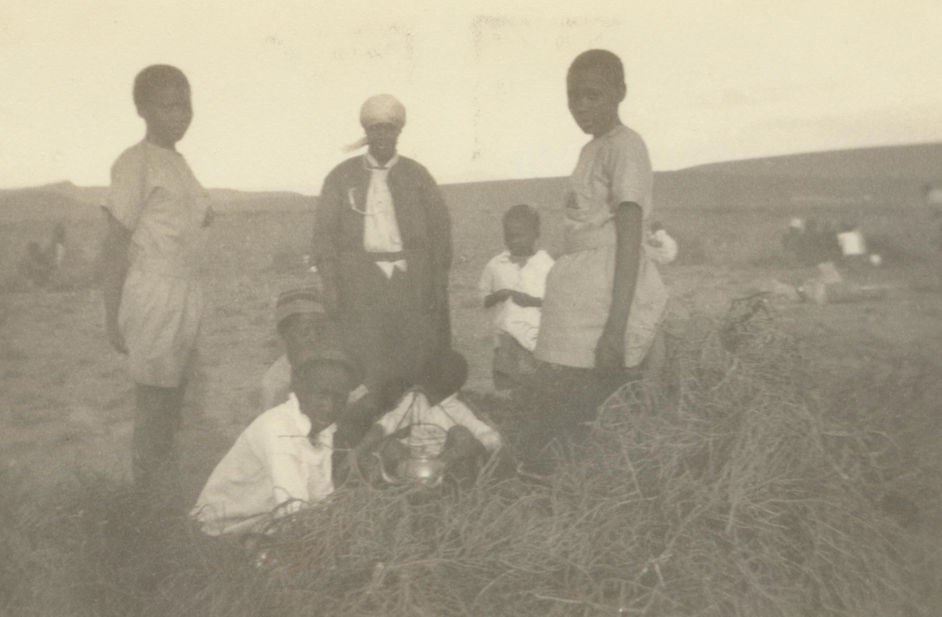 - A photograph album compiled by Mary Butler, containing photographs of Wayfarers, Sunbeams and Pathfinders, mostly in Cradock. Two newspaper clippings and a handwritten concert programme included. There are three photographs of Rev. James Arthur Calata's young daughters, and he himself is included in two photographs. This photograph showing Mrs Mkwaza with Sunbeams camping. Sunbeams, a church group for young girls and boys, is a program for children to develop skills like camping, sports, personal health
