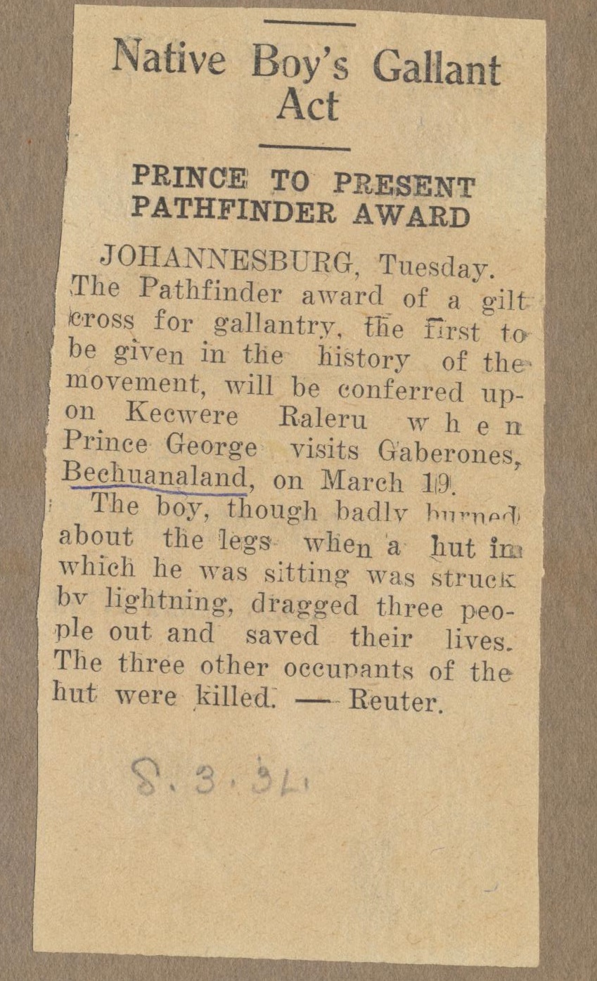 “Press cutting titled "Native boys's gallant act: Prince to present Pathfinder Award"”, Cory Library and Historical Archives, accessed 29 December 2025, https://digitalarchives.ru.ac.za/s/cory/item/9744