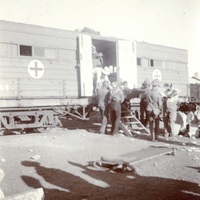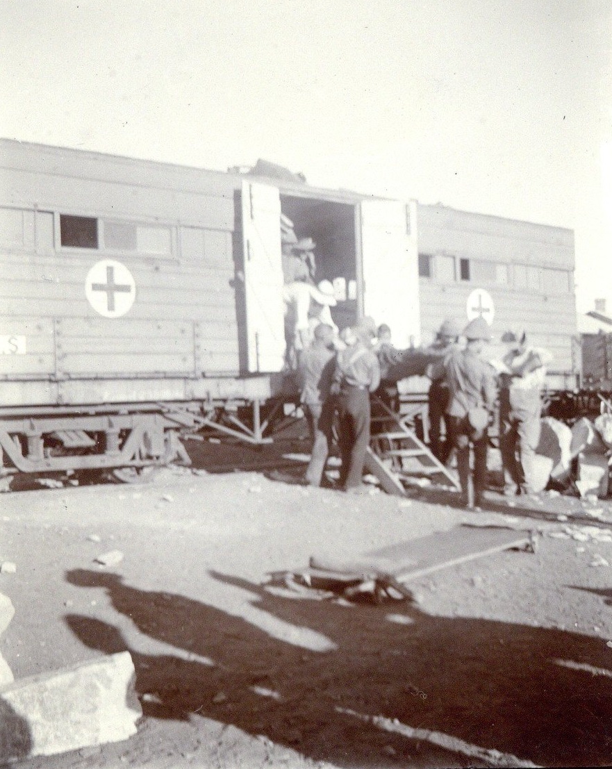 Boer War - offloading wounded soldier at hospital, Feb 1900