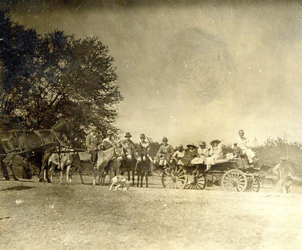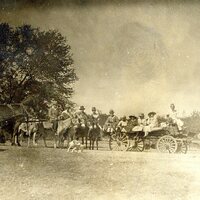 Charles Butler sitting upfront on wagon and other unidentified people