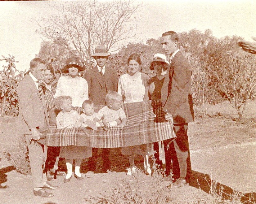 To the far right stands Harold Butler, in the middle Douglas Butler, 2nd from left is Ruth Butler and 1st child on the left is Denis Butler