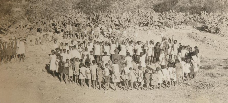 - A photograph album compiled by Mary Butler, containing photographs of Wayfarers, Sunbeams and Pathfinders, mostly in Cradock. Two newspaper clippings and a handwritten concert programme included. There are three photographs of Rev. James Arthur Calata's young daughters, and he himself is included in two photographs. This photograph is showing a church group of young girls, Sunbeams playing games during camp, 1930