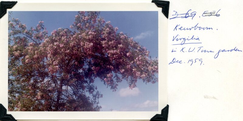 - Caption: "Keurbom Virgilia. K.W. Town garden. Dec. 1959."