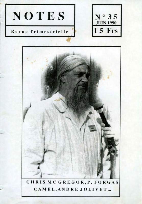 - Original copy of the French revue Notes. It's a long interview of Chris McGregor. On the front page there is a picture of Chris McGregor, on page 3 there is a picture of Chris McGregor playing piano, on a page 4 there is a picture of Chris McGregor bowing on stage and on page 5 there is a photo of Chris McGregor standing next to the organizer of the Nantes music festival.