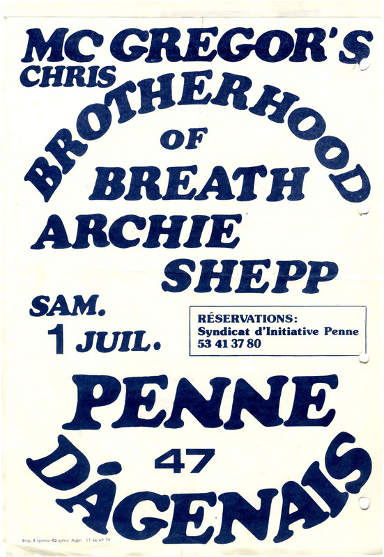 - Original poster for a concert of Chris McGregor's Brotherhood of Breath with Archie Shepp in Penne-d'Agenais.