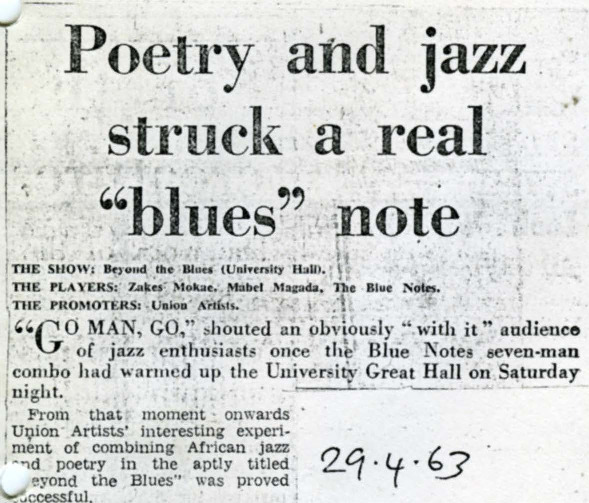 Unknown. Letter. 1962. “Poetry and Jazz Struck a Real ‘blues’ Note”, 1962, International Library of African Music, accessed December 29, 2025, https://digitalarchives.ru.ac.za/s/ilam/item/3739