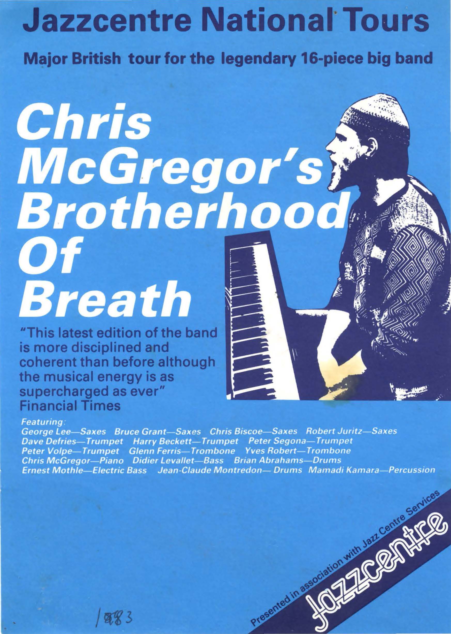 - Original poster for concerts of Chris McGregor's Brotherhood of Breath organised by the Jazzcentre National Tours.