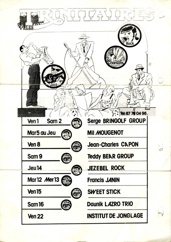 - (1985) Les Trinitaires. In: Jazz en Lorraine 85, November to December 1985, Lorraine.