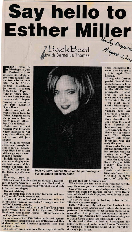 Thomas, Cornelius. Letter. 2001. “Say Hello to Esther Miller”, 2001, International Library of African Music, accessed December 29, 2025, https://digitalarchives.ru.ac.za/s/ilam/item/5910