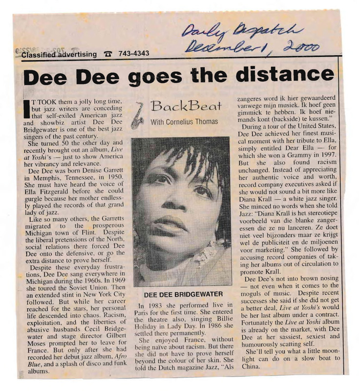 Thomas, Cornelius. Letter. 1999. “Dee Dee Goes the Distance”, 1999, International Library of African Music, accessed December 29, 2025, https://digitalarchives.ru.ac.za/s/ilam/item/5924