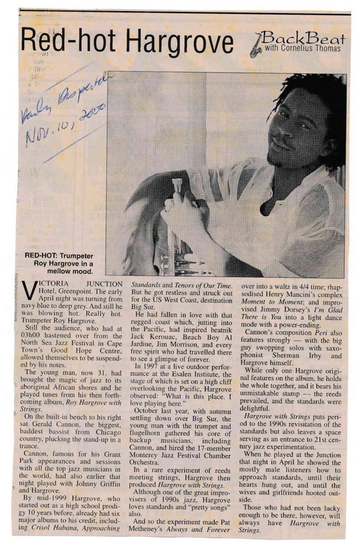 - Photocopied article from the newspaper The Daily Dispatch about Roy Hargrove, a jazz musician.
