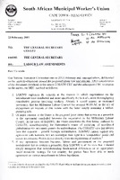 Our National Executive Committee met on 20/21 February and, amongst others, deliberated on the latest developments around the proposed labour law amendments. After consideration of the document circulated at the recent COSATU CEC and the subsequent CEC resolution on the matter, our NEC resolved as follows: SAMWU expresses its concern at the manner in which negotiations on the amendments were conducted and more specifically the lack of a more thoroughgoing consultative process involving workers. Already it would appear, as cautioned previously, that the Millenium Labour Council has usurped NEDLAC as the site of engagement on matters of this nature with the latter simply assuming a rubber- stamping role. Of major concern to the Union is the proposed joint vision that serves as a preamble to the agreement concluded between the negotiators in the Millenium Labour Council. In the view of SAMWU, the vision constitutes the first formal embrace by COSATU, notwithstanding the Federation's vision of socialism, of neo-liberal globalisation viz. economic growth for redistribution. The COSATU view has always been the opposite - growth through redistribution. SAMWU cannot support any agreement with business that acknowledges their right to a 'competitive' profit and secure investments. Profits derive directly from the exploitation of workers. If any agreement between business, labour and government on the proposed amendments has to contain a preamble, then SAMWU is of the view that it should simply recognise that notwithstanding fundamental differences on an appropriate macro-economic strategy for the country, the parties have been able to reach agreement on various amendments to labour legislation. -
