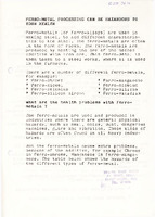 Ferro-metals (or Ferro-alloys) are used in making steel, to add different characteristics to the steel. The ferro-metals are often in the form of rocks. The ferro-metals are produced by heating the ore of the needed additive with iron ore. This ferro-metal is then taken to a steel works, where it is used in the furnaces. -