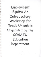 This workshop is designed to give you a reliable introduction the Employment Equity Act. It is based on hard information and on ACTIVITIES or discussion exercises that will help you to understand how the Act works, who it covers, and what the implications are for trade unionists. Each of the Activities is complemented with information that will help you to understand the Act in more detail. Sections have been added to help you find further information, and to understand the terms that are used in the Act itself. In a two day programme, you are not going to be an 'expert' on the Employment Equity Act, but we hope that you will feel more confident about using the Act, especially in ensuring that it is used to address a wide range of discriminatory practices at the workplace. As with most legislation, the more that you begin to use it, the more its strengths and weaknesses will emerge. It is very important that any weaknesses in the practical application of the Act are reported through your Union to the Federation. This will help the Federation to campaign for improvements in the legislation, and to close any loopholes that allow employers to avoid their responsibilities. -