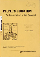 This research report sets out to examine the concept of People's Education in South Africa from December 1985, when the call for People's Education was first made, to September 19877“It is the result of a preliminary six month research project which set out to lay the basis for a long term study of international perspectives on People's Education. The researcher experienced the difficulties associated with doing contemporary research in a charged political environment. Several of the potential interviewees were either in detention or 'on the run' because of their commitment to People's Education. The contemporary nature of the research focus also meant that the sources of relevant printed materials were limited and dispersed. The study demonstrates that People's Education is concerned with more than responding to 'the education crisis'. In addition, it is attempting to address the problem of a future education system in a post-apartheid society. As adult educators we are excited by the challenges that People's Education offers. It is one of the first times in South Africa that 'lifelong education ' is on the agenda where education in the school is seen as only one aspect of necessary education provision. Adult Education at the workplace, in voluntary associations, in political movements, in the home, is seen as integral to the educational process both in the period of social transformation and in a future, post-apartheid society. This study has confirmed that People's Education cannot be ignored. People's Education has achieved what many previous investigations into education have not achieved; it has involved a wide range of grassroots people in the debates around the future of South African education. It is an ongoing process. As Ken Hartshorne is quoted as saying : "Both the debate on and the process leading to post-apartheid education are well underway; they are loaded with complexities, uncertainties and risks, because they are taking place in an unstable and unresolved vortex which changes from day to day, from place to place." I would like to acknowledge the assistance of colleagues who played an important role in the process of the study : Professor Owen van den Berg who was very helpful in the setting up of the project, and Mr Brian O'Connell who assisted with the conceptualisation and ongoing discussion of the project. In addition, his critical reading of the draft of this report provided many invaluable suggestions. Thanks are also due to our colleagues at UWC and elsewhere who took time to read the draft paper and offered constructive criticisms. -