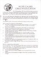 On 15 December 1997 the WCED tabled a proposal in the ELRC. This would effectively terminate the contracts of 3333 temporary educators who were filling vacant substantive posts that were created after 1 July 1996 as a result of the rationalisation process. Not only will temporary educators be dismissed, but the posts that they occupy will be frozen. This means that the teachers who remain behind at schools will have increased workloads and will have to manage bigger class sizes -