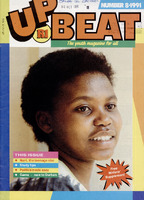 School is out! Christmas is around the corner. So put up your feet and enjoy your well-earned holiday break. And don't be without Upbeat. This issue is packed with great holiday reading; quizzes, holiday places to visit, cassettes and books to win. Boys move over! There is a new soccer wizard, to make you tremble in your boots - HER name is Fikile Sithole. Meet her on page 8. There's also lots of great music in this issue. There's a poster of all your local favourites on page 20. But also learn about the golden oldies, who had your grandparents up and jiving. We hope you like our FREE Peace Begins with you' poster. Read it, talk about it and put it up on your wall. We hope the ideas help to bring a little peace, into your neighbourhood and home. Hundreds of readers wrote to us this year. Many letters were about violence; in the street, at home and in school. The terrible violence this year brought pain and suffering to many people. For too long apartheid has destroyed people's hopes and dreams. We want peace and democracy in our land. We want proper schools, were all young people can enjoy learning. Thank you for supporting Upbeat this year and for filling our pages with your wonderful poems, letters, stories and ideas. We wish all our readers a happy and peaceful holiday. -