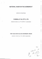 National substantive agreement entered into between Parmalat SA (PTY) Ltd and the Food and Allied Workers Union. -