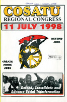 Records of the COSATU Western Cape Regional Congress held on 11 July 1998. The congress focused on mobilizing workers in the Western Cape province under the national theme of "Defend, Consolidate and Advance Social Transformation." Key agenda items included regional strategies for the 1999 General Elections, local government delivery, and addressing job losses in the regional textile and agricultural sectors. -