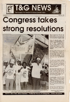 A 4-page edition documenting the outcomes of the 1989 T&GWU Congress in Pietermaritzburg. Key features include the "Year of Restructuring," the merger with Zakheni Transport & Allied Workers Union (5,000 members), the election of new office-bearers (including Nathi Nhleko as General Secretary), and reports on bus strikes at Putco and IBL. The issue also highlights international solidarity and the launch of a national campaign for the cleaning and security sectors. -
