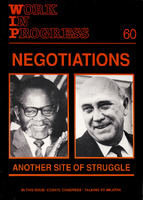 • A 46-page issue exploring the theme of negotiations as "another site of struggle." Key features include a detailed report on the third COSATU Congress and its "working compromises," an analysis of the "dual roles" of Inkatha and Chief Buthelezi, and a discussion of the SACP's perspective on insurrection versus negotiation. The issue also tracks labor trends, including the impact of the hunger strikes on state policy and the increase in worker militancy during the first half of 1989.
